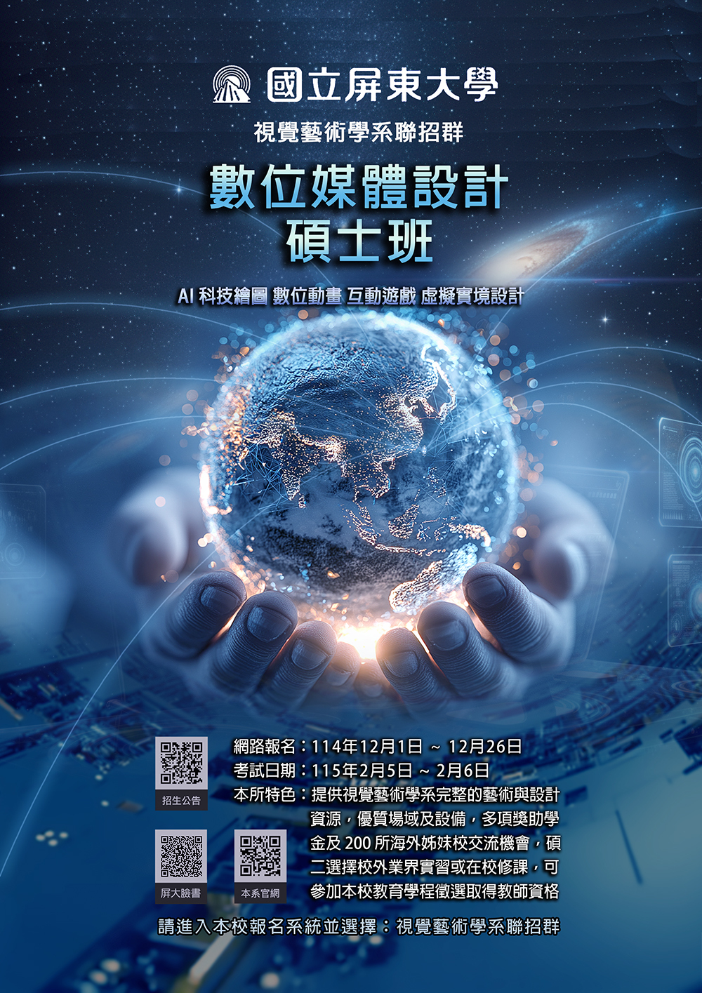 【招生公告】115學年度數位媒體設計碩士班招生(報名日期:114.12.1~114.12.26)